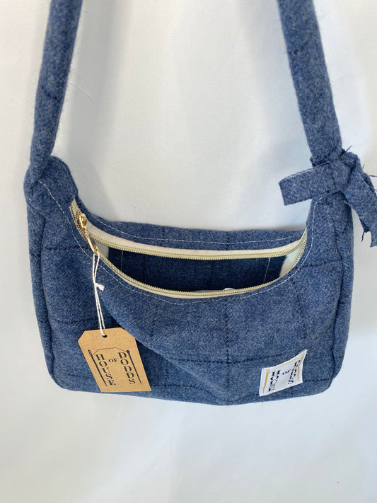100% Wool in Blue Check Hand bag