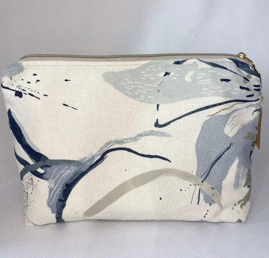 Blue Floral Embroidered Cosmetic bag with water resistant lining