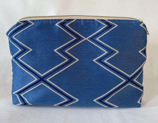 Blue with Silver Embroidery Cosmetic bag with water resistant lining