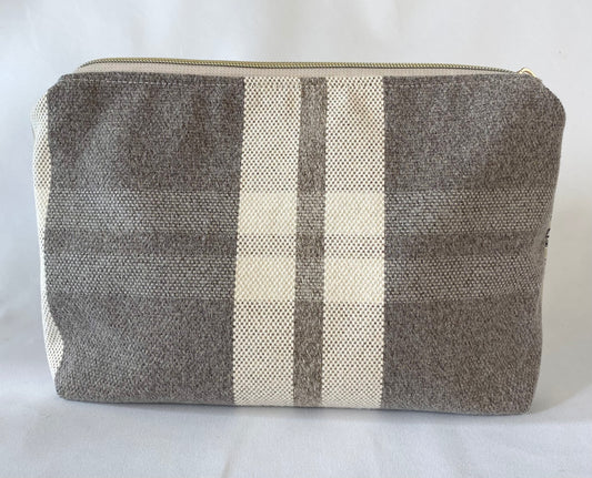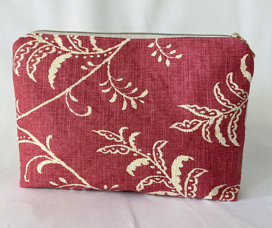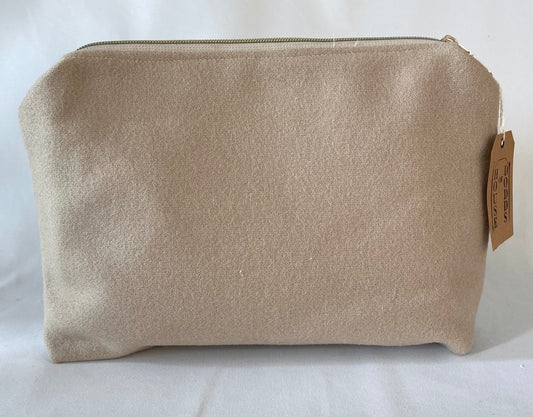 Brown Floral with wool Cosmetic bag with water resistant lining