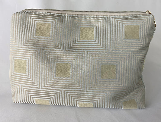 Our collection of handcrafted cosmetic bags is designed to bring beauty, calm, and purpose into your everyday routine. Each bag is one-of-a-kind, thoughtfully made from repurposed high-end textiles transforming surplus fabric into something truly special.