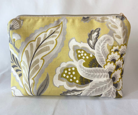Yellow Woven Cosmetic bag with water resistant lining