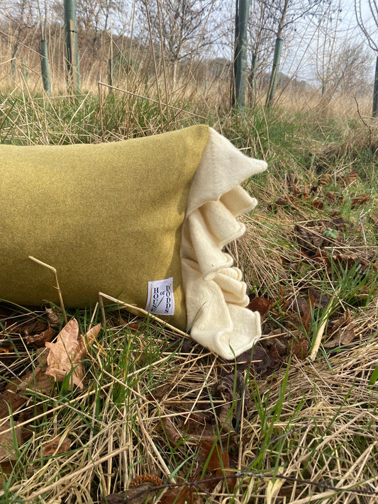 Green and Cream Sleepy Frill Cushion – Limited Edition, Handcrafted Charm