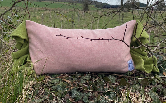 Pink and Green Sleepy Frill Cushion – Limited Edition, Handcrafted