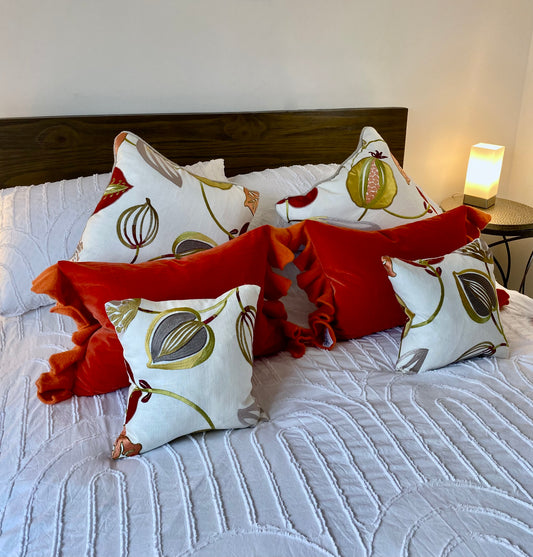 Stone and Cream Sleepy Frill Cushion – Limited Edition, Handcrafted