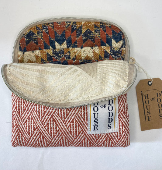Orange Tartan Cosmetic bag with water resistant lining