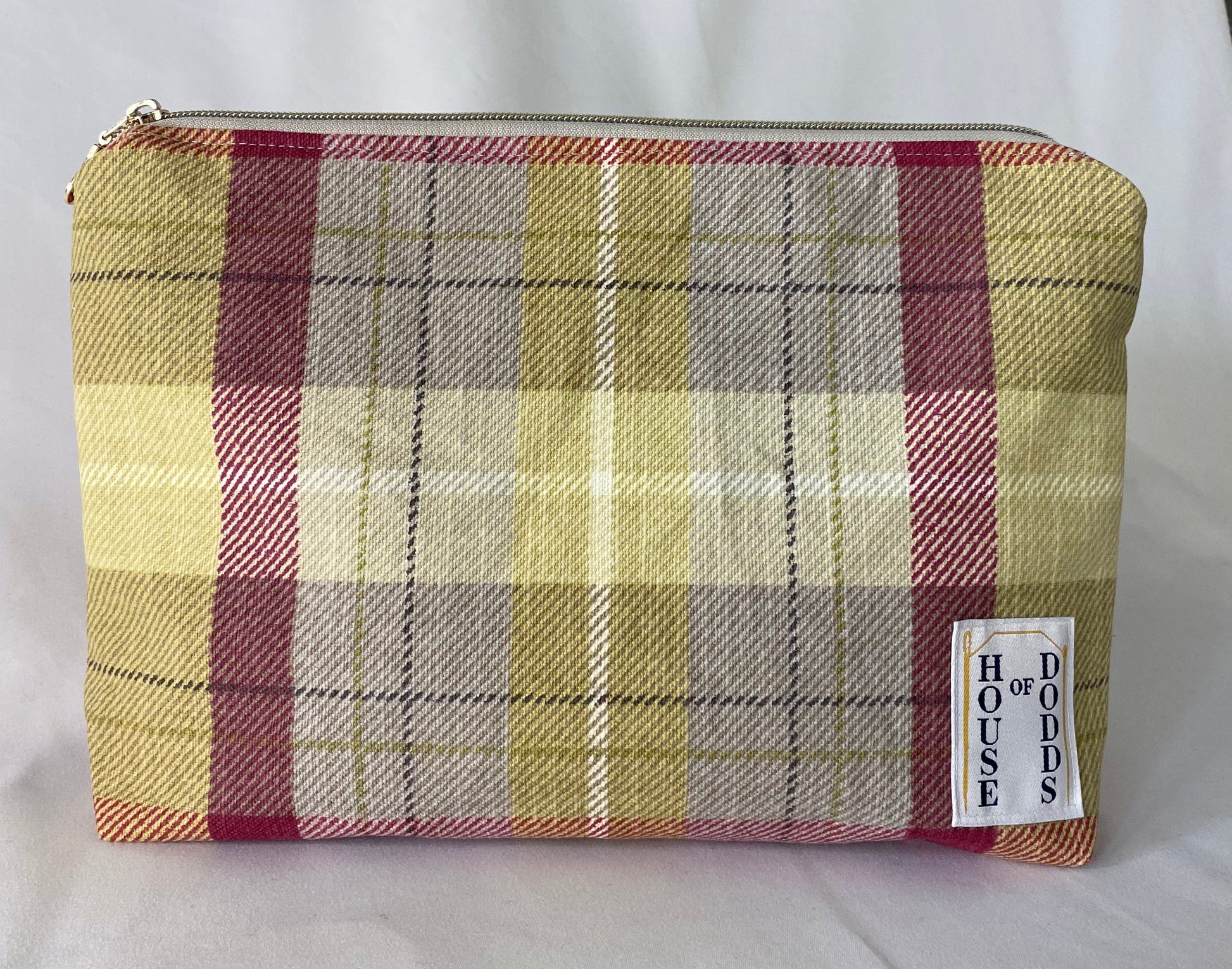 Cherry Red Tartan Cosmetic bag with water resistant lining