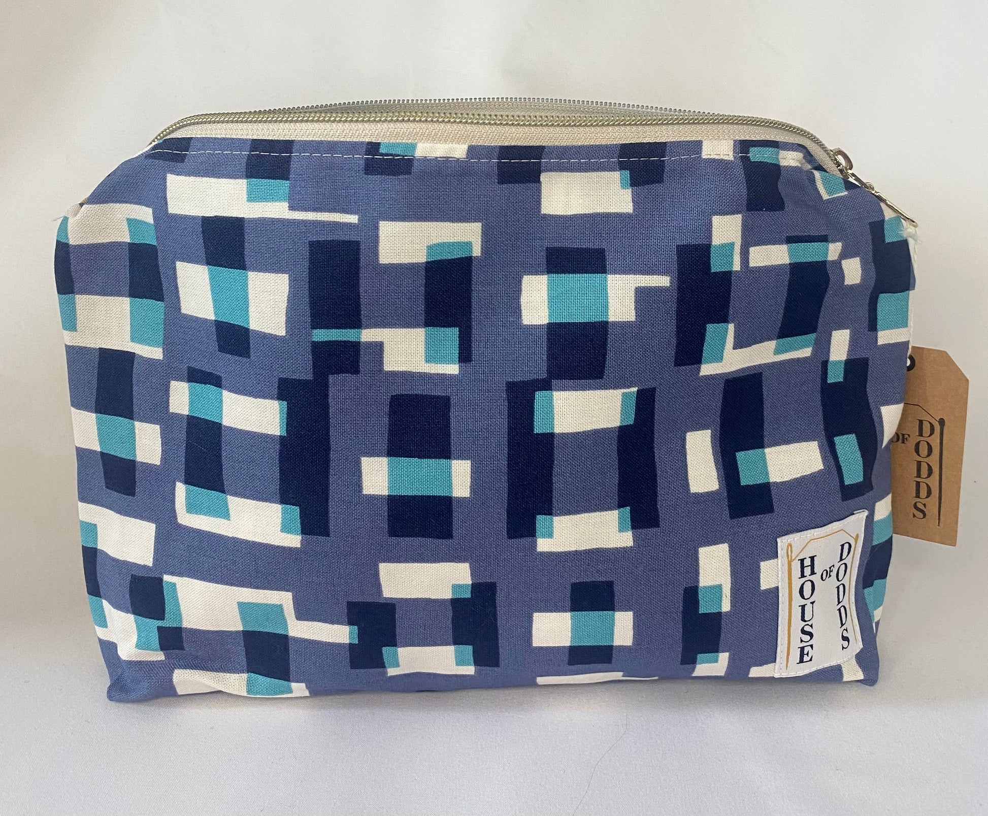 Blue Geometric Cosmetic Bag – Textured, Colourful & One-of-a-Kind