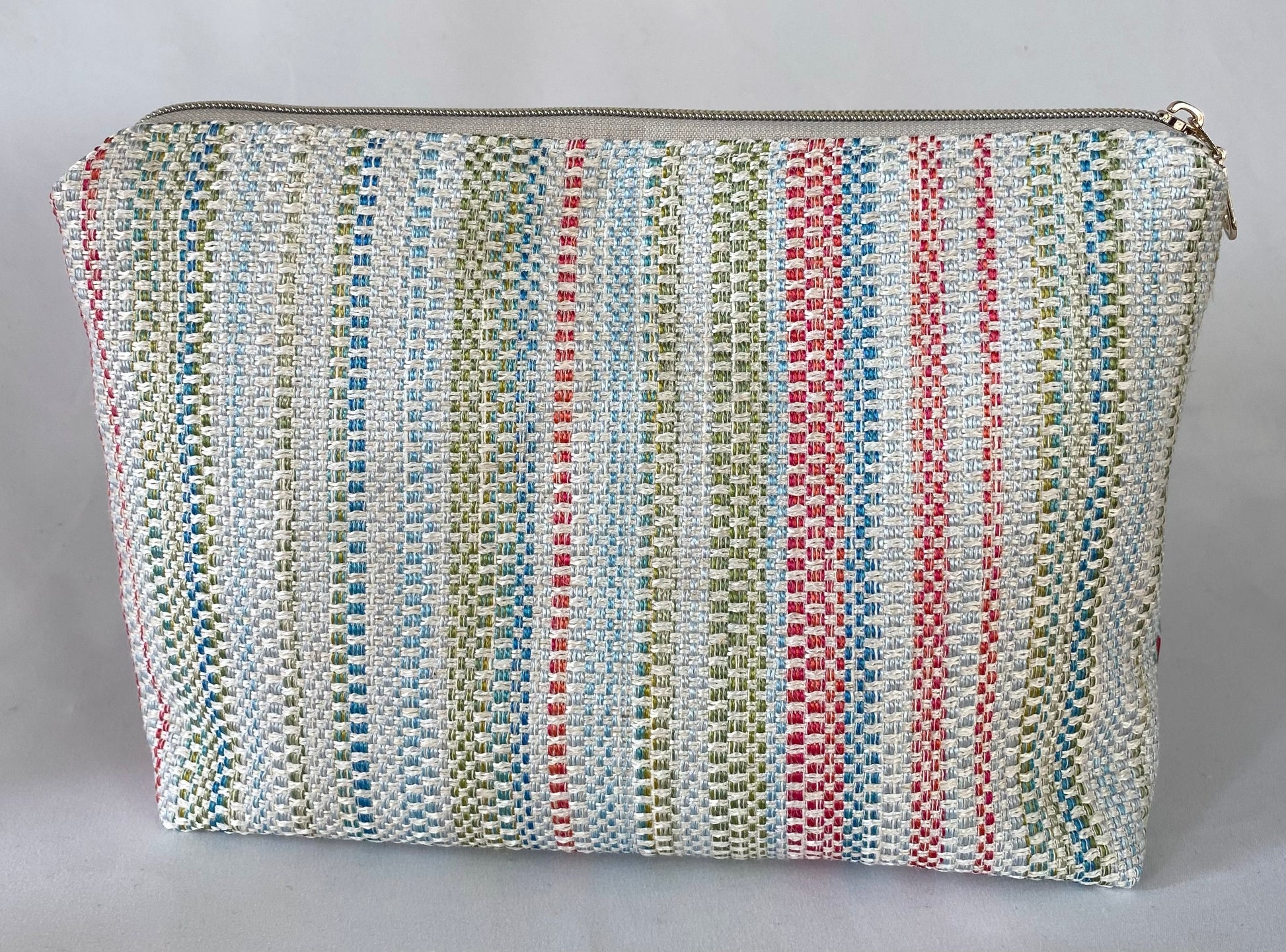 Elevate your everyday essentials with this beautifully handcrafted Textile Cosmetic Bag, thoughtfully made from two unique fabric panels. Each one blends an artful mix of colours and textures, creating a bold, individual piece that’s as eye-catching as it is practical.